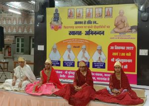 ब्रह्मचारिणी साधना दीदी, बाल ब्रह्मचारिणी नेहा दीदी, बाल ब्रह्मचारिणी दीप्ति दीदी, बाल ब्रह्मचारिणी पूनम दीदी की जैनेश्वरी दीक्षा 5 अक्टूबर को परम पूज्य पंचम पट्टाधीश वात्सल्य वारिधि 108 आचार्यश्री वर्धमान सागर महाराज के ससंघ सान्निध्य में शांतिवीरनगर महावीरजी में संपन्न होगी। समाजसेवी कैलाश पाटनी के साथ दीक्षार्थियों का आगमन दोपहर जयपुर रोड स्थित चारित्र चक्रवर्ती आचार्य शांतिसागर स्मारक पर हुआ। मंत्री सुभाष बड़जात्या ने बताया कि जैन समाज के लोगों ने इंदिरा नगर स्थित शांतिनाथ दिगम्बर जैन मंदिर पहुंचने पर दीक्षार्थियों की भव्य अगवानी कर छोल भराई की। शिवाजी नगर स्थित पार्श्वनाथ दिगम्बर जैन मंदिर से शोभायात्रा निकाली गई। इससे पूर्व शिवाजी नगर महिला मंडल द्वारा मंदिर जी में दीक्षार्थियों की छोल भरी गई। आकर्षण लाइटों के साथ सजी-धजी, बग्गीयो में सवार दीक्षार्थियों का जगह-जगह पुष्पवर्षा कर माला पहनाकर अभिनंदन किया गया। बैंड-बाजे के साथ शोभायात्रा सिटी रोड स्थित जैन भवन में महावीर महिला मंडल द्वारा भक्ति नृत्य कर दीक्षार्थियों की छोल भराई की।आदिनाथ मंदिर में आदिनाथ पंचायत के सदस्यों द्वारा दीक्षार्थियों की छोल भरी। सिटी रोड चंद्रप्रभु मंदिर मैं चंद्रप्रभु महिला मंडल द्वारा दीक्षार्थियों की छोल भरी। शोभायात्रा अंत में रूपनगढ़ रोड स्थित श्री मुनिसुव्रतनाथ मंदिर पहुंची। जहां पर सकल दिगंबर जैन समाज द्वारा वैराग्य की ओर बढऩे वाले दीक्षार्थियों के त्याग की अनुमोदना कर काजू, बादाम, किसमिस, अखरोट , नारियल, मखाने, अनार, आम, अनानास, सेव आदि पंच मेवे सहित छोल भराई की गई। कार्यक्रम के दौरान संघस्थ ब्रह्मचारी गज्जू भैया एवं परमित भैया का तिलक लगाकर माला पहनाकर साफा बांधकर शॉल ओढ़ाकर स्वागत अभिनंदन किया। वही दीक्षार्थियों ने अपने उद्बोधन के दौरान उपस्थित सभी बंधुओं को कहा कि अभी स्त्री पर्याय का छेदन करके, आगामी भव में मोक्ष रूपी लक्ष्मी को प्राप्त करने के लिए हम दीक्षा प्राप्त कर रहे है। साथ ही कहा कि आपको भी अपने पुरुषार्थ से आत्म कल्याण करने का प्रयास करना चाहिए।अंत में पंचायत अध्यक्ष विनोद पाटनी ने सभी का आभार व्यक्त किया।