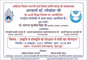 देहरादून के राजभवन में “प्रकृति व संस्कृति के संरक्षण में संतों का योगदान” विषय पर संगोष्ठी 8 को अतिथि श्री राज्यपाल उत्तराखंड