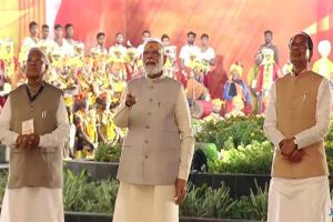 विश्व प्रसिद्ध श्री महाकालेश्वर मन्दिर में आज ‘श्री महाकाल लोक’ का प्रधानमंत्री श्री नरेन्द्र मोदी ने लोकार्पण कर राष्ट्र को समर्पित किया। प्रधानमंत्री श्री मोदी द्वारा रिमोट का बटन दबाते ही रंगीन कलावे (रक्षा सूत्र) निर्मित शिव लिंग के रूप में भगवान महाकाल मानों स्वयं प्रकट हो गये। साथ ही पूरा वातावरण शिवमय हो गया। प्रधानमंत्री श्री मोदी ने ‘श्री महाकाल लोक’ का भ्रमण कर निर्मित कलाकृतियों को देखा। प्रधानमंत्री ने लोकार्पण के पूर्व श्री महाकाल लोक में उपस्थित साधु-सन्तों का अभिवादन किया।