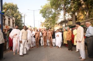 यह विचार श्रुत संवेगी मुनि श्री 108 आदित्य सागर जी महाराज ने श्री नेमिनाथ जिन् बिंब पंचकल्याणक प्रतिष्ठा महोत्सव के प्रथम दिन महावीर नगर में आयोजित महोत्सव में आए हजारों भक्तों की उपस्थिति में व्यक्त किए। मुनि श्री ने कहा कि जो अपने मान अपमान की स्थिति में भी समता और शांति रखता है उसका व्यक्तित्व बड़ा होता है। पंचकल्याणक महोत्सव का शुभारंभ पूलक चेतना मंच के निर्देशन एवं मुनिश्री आदित्य सागर जी, अप्रमितसागर जी एवं मुनि श्री सहज सागर जी के सानिध्य में कनाडिया रोड के नए जैन मंदिर से प्रारंभ भव्य एवं विशाल घट यात्रा से हुआ, शोभायात्रा में 15 बग्घियों मैं सौ धर्म इंद्र इंद्राणी, कुबेर, भगवान के माता पिता, विधि एवं महायज्ञ नायक और अन्य प्रमुख पात्र बैठे थे। सैकड़ों की संख्या में पुरुष सम्मिलित हुए और महिलाएं सर पर मंगल कलश लिए एवं हाथों में जैन ध्वज लिए लहराते हुए एवं मंगल गीत गाते हुए चल रहीं थी। जुलूस में सम्मिलित कर्नाटक का प्रसिद्ध चिंडे बैंड अपने बाद्ध यंत्रों से सु मधुर ध्वनि एवं स्थानीय बैंड के कलाकार भजनों की गंगा प्रवाहित कर रहे थे।
