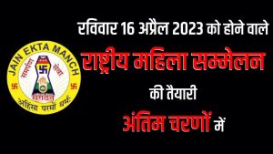 नई दिल्ली ! ( देवपुरी वंदना ) ”अजेय -नारी आराध्य -नारी” शिक्षा, धनसंपदा, शक्ति स्वरूपा, मातृत्व ममता मे अग्रणी नारी जिस से समाज व राष्ट्र उन्नति की ओर बढ़ता है उसी को और आगे बढ़ाते हुए जैन एकता मंच द्वारा आगामी रविवार 16 अप्रैल 2023 को नई दिल्ली स्थित केदारनाथ साहनी सभागार ”सिविक सेंटर”वातानुकूलित हाल मे देश के विभिन्न प्रांतों जैसे राजस्थान, उत्तर – प्रदेश , मध्य – प्रदेश,महाराष्ट्र ,गुजरात,हरियाणा ,पंजाब , आदि स्थानों से अपनी- अपनी कार्यकुशलता की योग्यता लिए समग्र जैन समाज की महिला शक्ति का भारी उत्साह व जोश के साथ समावेश राष्ट्रीय महिला सम्मेलन के रूप में होने जा रहा है । महिला सम्मेलन में मुख्य रूप से महिलाओं को खुशहाल परिवार, शैक्षणिक, स्वास्थ्य, जीव- – दया, मानव सेवा, व्यवसायिक आदि राजनैतिक हुनर से समाज, राष्ट्र को आगे बढ़ाने में उनकी योग्यता को क्रियान्वित कर समग्र जैन महिला वर्ग को समाज व राष्ट्रहित के लिए तैयार कर जैन समाज की महिला शक्ति को आगे लाने का प्रयास किया जाएगा ।