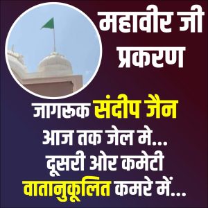 को श्री महावीर जी तीर्थ कमेटी महावीर जी के मुख्य द्वार पर पठान बाबा के जुलूस के दौरान हरे रंग का झंडा लगाने की सूचना समाज को देने पर कमेटी द्वारा उसे अपराधी घोषित करते हुए 30 अगस्त 2023 को पुलिस थाने में एफ.आई.आर दर्ज कराते हुए उसे जेल में भेज दिया ? इस घटनाक्रम के बाद संदीप जैन के पिताजी श्री सुरेंद्र जैन बड़े मंदिर की मैनेजर पाटनी जी के साथ-साथ वरिष्ठ विद्वान पंडित मुकेश जैन शास्त्री जनसंपर्क अधिकारी और अध्यक्ष सुधांशु कासलीवाल से माफी मांगते रहे मगर इनका दिल नहीं पसीजा जिसके फल स्वरुप संदीप जैन