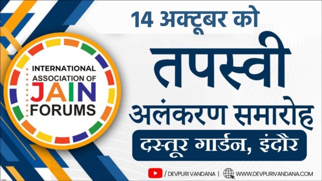 Indore News : इंदौर में 14 अक्टूबर को अंतरराष्ट्रीय संगठन ऑफ जैन फोरम द्वारा तपस्वी अलंकरण समारोह