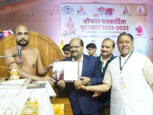 इंदौर | आज से 13 वर्ष पूर्व स्थापित हुई समाज में धार्मिक, सामाजिक, संस्कृतिक, शैक्षणिक एवं मानव हितार्थ के लिए विख्यात श्रीफल फाउंडेशन ट्रस्ट समाज व राष्ट्र के चौथा स्तम्भ, पत्रकारिता जगत के श्रेष्ठ, सजग, जागरूक, निडर पत्रकारों एवं लेखकों का सम्मान करता आ रहा है, जिसके तहत मध्य प्रदेश की औद्योगिक राजधानी इंदौर शहर के पश्चिम क्षेत्र में स्थित अतिशयकारी नवग्रह जिनालय श्री ग्रेटर बाबा परिसर में विगत आठ दिनों से चल रहे श्री 1008 कल्पद्रुम महामंडल विधान एवं विश्व शांति महायज्ञ के समापन दिवस पर महामंड़प में श्रीमती अनीता जैन सागवाड़ा एवं श्रीमती रेखा पाटनी इंदौर के संचालन व श्रीफल न्यूज़ की संपादक तुष्टि जैन, घाटोल के सहयोग में श्रीफल स्मृति पत्रकारिता पुरस्कार का आयोजन अंतर्मुखी मुनि श्री 108 पूज्य सागरजी महाराज के सानिध्य में हुआ जिसमे,