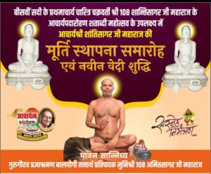 फिरोजाबाद में 22 जनवरी को प्रथम आचार्य चारित्र चक्रवर्ती शांति सागर जी की मूर्ति स्थापना समारोह एवं नवीन वेदी शुद्धि