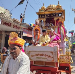 भव्य रथ यात्रा में भगवान का हुआ विहार भव्य पंचकल्याणक प्रतिष्ठा महोत्सव का शुभारंभ रथ यात्रा व घट यात्रा के साथ हुआ तो भगवान का नगर विहार सौधम ईद्र बने रिंकेश जैन बड़जात्या,कुबेर इंद्र वैभव जैन,ईशान इंद्र दीपक जैन,माहेन्द्र इंद्र रवि जैन बड़जात्या, सानत इंद्र मुकेश जैन ने करवाया।