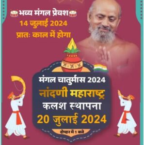 भव्य मंगल चातुर्मास कलश स्थापना 20 जुलाई 2024 को दोपहर में 1 बजे से होगी।