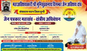 कोटा ! ( देवपुरी वंदना ) समाज के सजग, जागरूक जैन पत्रकारों के समूह के रूप में राजस्थान प्रांत ही नहीं संपूर्ण देश की शिक्षा नगरी कोटा में ही स्थापित जैन पत्रकार महासंघ (रजि.) का क्षेत्रीय अधिवेशन रविवार को श्री 1008 मुनि सुव्रतनाथ अतिशय क्षैत्र केशोरायपाटन में होने जा रहा है ।