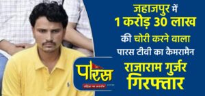 स्वस्ति धाम जहाजपुर में 1 करोड़ 30 लाख की चोरी करने वाला पारस टीवी का कैमरामैन राजाराम गुर्जर गिरफ्तार …