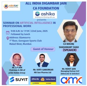 22 जून को मुंबई में ऑल इंडिया दिगंबर जैन सी.ए. फाउंडेशन के तत्वावधान में सेमिनार