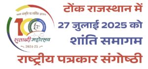 शांति समागम राष्ट्रीय पत्रकार संगोष्ठी 27 जुलाई को टोंक (राज.) में