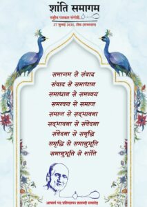पत्रकारों का मार्गदर्शन प्राप्त होगा। 27 जुलाई 2025 को प्रातःकाल 7.30 से 8.00 बजे तक रजिस्ट्रेशन, प्रातः 8 से 10.30 प्रथम उद्घाटन सत्र, उपरांत संघ आहारचर्या, प्रातः 11.30 से 12.00 बजे आचार्य संघ सान्निध्य में परिचय, दोप. 1.00 से 2.00 परस्पर संवाद, 2.00 से 3.30 तक द्वितीय सत्र, 4.00 से 5.30 तक समापन, सम्मान सत्र आयोजित किया गया है। शांति समागम राष्ट्रीय पत्रकार संगोष्ठी का निर्देशन वरिष्ठ संपादक लेखक डॉ. चीरंजीलाल बगड़ा (कोलकाता) करेंगे ।