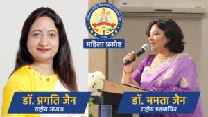 अखिल भारतीय जैन पत्र-संपादक संघ महिला प्रकोष्ठ मे डॉ. प्रगति जैन (इंदौर) राष्ट्रीय अध्यक्ष व डॉ. ममता जैन (पुणे) राष्ट्रीय महासचिव मनोनीत