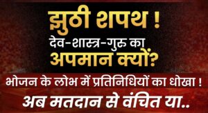 अब यही देखना है कि आगामी 15 मार्च 2026 को जिन्होंने देव शास्त्र गुरु को साक्षी मानकर कुछ संकल्प लिए वह किस कदर उनके संकल्प को अनदेखा करते हैं !व अपने मतदान का उपयोग करते हैं खैर मर्जी सब सब की अपनी – अपनी अपने संकल्प को खेल मत बनाएं आप तो खुश हो रहे हैं घर परिवार में इसका क्या असर होगा बच्चों को क्या सीख देंगे बेटा जैसा हम समाज में फुट डालकर भोजन का आनंद लेते हैं वैसे ही तुम भी अपने पेट भरने के लिए किसी भी हद को पार करना व अपने घर के पूज्य माता-पिता दादा- दादी को सरे आम मजाक बनाकर रखना वह कुछ नहीं कहेंगे सबसे बड़ा आश्चर्य तो इस बात का है कि देव शास्त्र गुरु की शपथ दिलाने का क्या औचित्य रहा क्योंकि संकल्प को लेना व दिलाना कितना पालन होता है यह तो वह खुद जानते हैं !